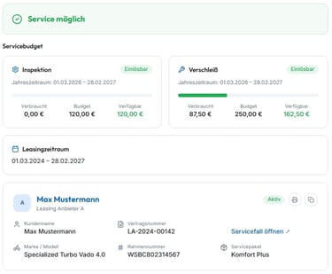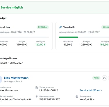 Leasing Check ist eine neutrale Branchenlösung zur schnellen Prüfung von Servicebudgets und Vertragsstatus bei Dienstradleasing-Verträgen – direkt im Werkstattprozess.